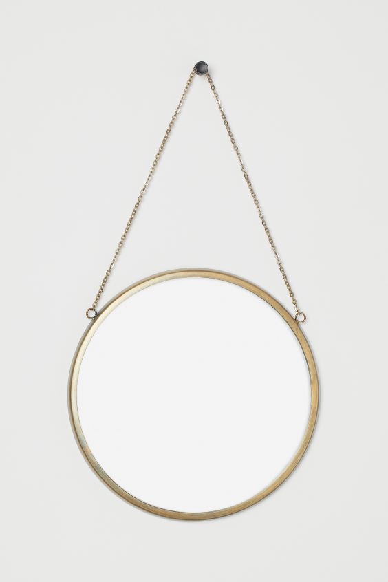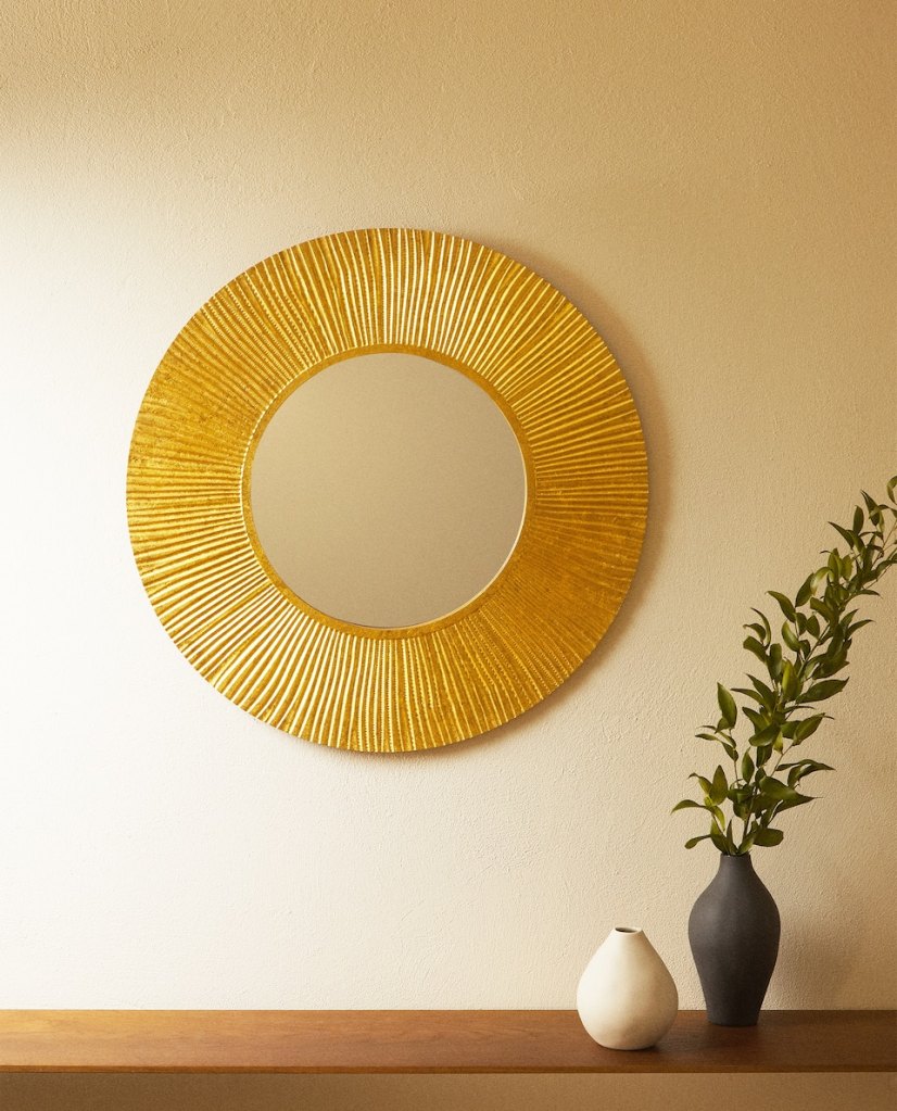 Otro espejo que no pasará desapercibido es esta opción circular y dorado que aportará sobriedad y carisma a tu hogar.