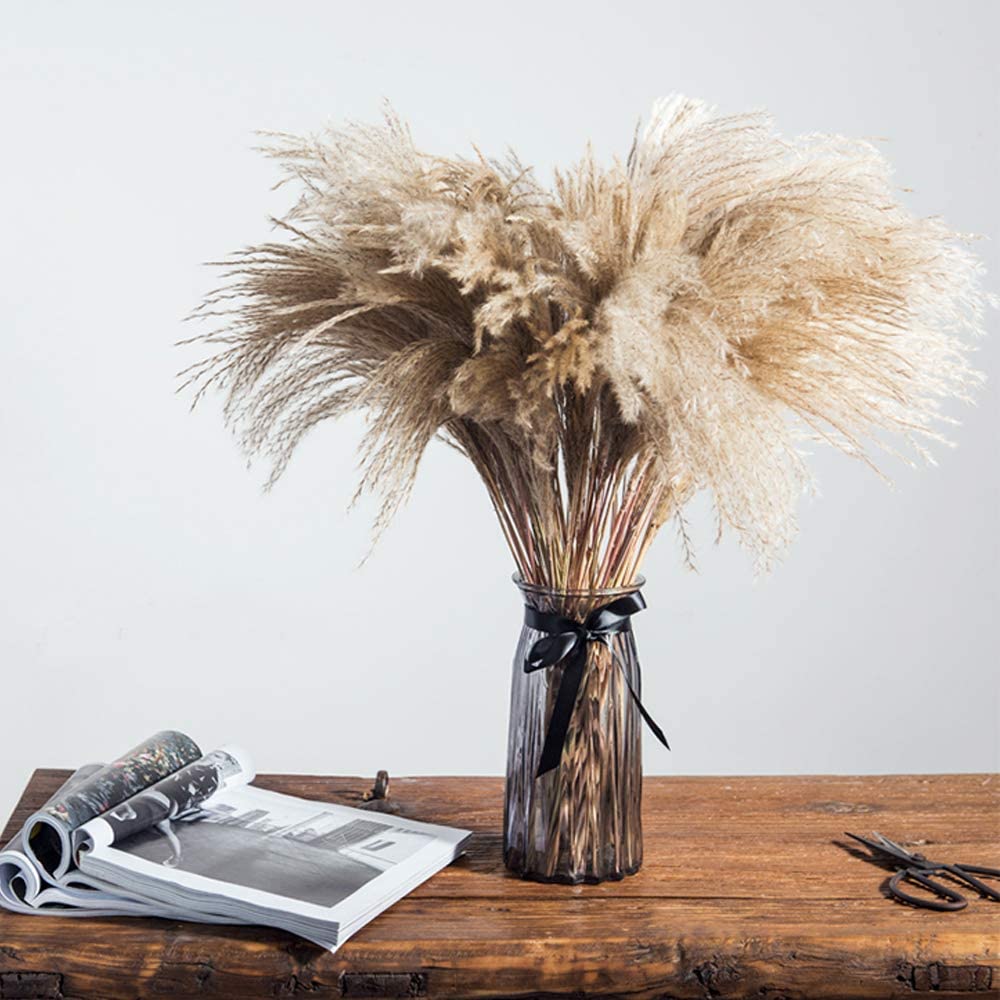 A pesar de que estas “plumas decorativas” son una tendencia en auge es complicado encontrar un lugar dónde comprarlas, es por eso que he creado una pequeña selección asequible de las distintas hojas de pampa seca de Amazon que mejor van con la decoración nórdica: