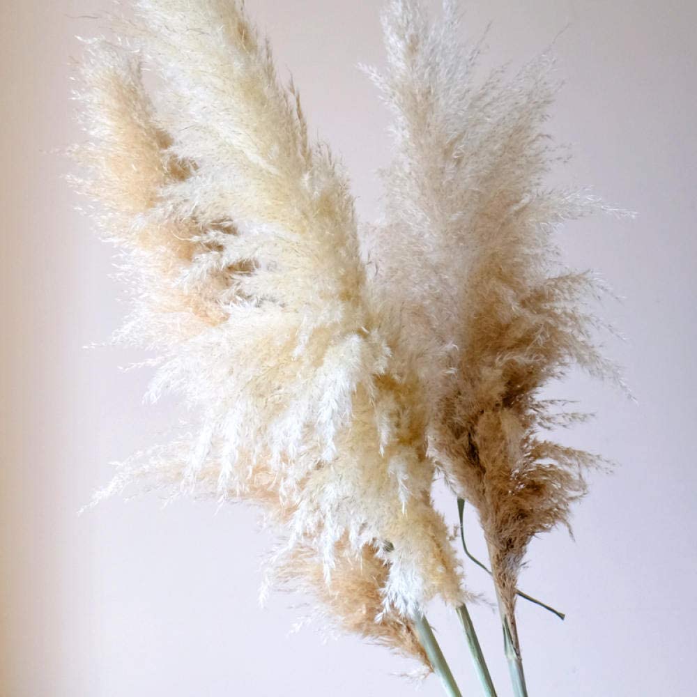 Por último, puedes conseguir estas 5 pampas voluminosas de color blanco roto. Es una opción genial para un gran jarrón que poner por ejemplo al lado del sofá.