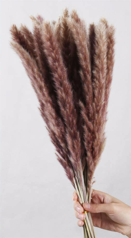 Si también te gusta el rosa, pero no quieres arriesgar tanto puedes escoger estas hojas de pampas secas en rosa palo. Es un color más sobrio, por lo que lograrás el efecto moderno de las plumas decorativas con un color más clásico, aunque especial.