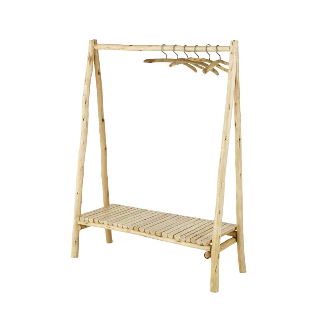 Por otra parte, en Maison du Monde también hay percheros burro muy especiales. Por ejemplo, el perchero con madera de eucalipto es una pieza única que dará mucha personalidad a cualquier rincón. Imagina lo bien que queda si incorporas ropas con distintas texturas a una pieza tan especial.