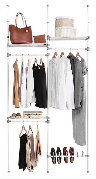 En Leroy Merlin puedes encontrar burros de pie sencillos y estrechos para combinar en una habitación nórdica sin ocupar mucho espacio o incluso te permite crear tu propio vestidor. Si tienes una habitación disponible puedes combinar distintos kits como el que aparece en la foto para crear una ropero personalizado. Aunque solo te muestro el de tres baldas hay de distintos formatos.