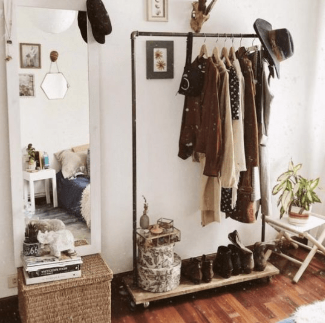 Un burro de ropa puede ser un elemento clave para aportar el tono desenfadado y pragmático de la decoración nórdica. Incluso combinar una cómoda con un perchero en una pequeña habitación individual puede aportar mucha amplitud a un espacio.